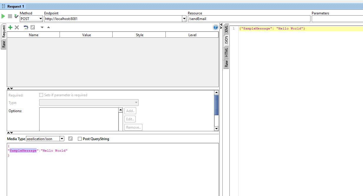 Configure  fromAddress,toAddress,subject and content as payload